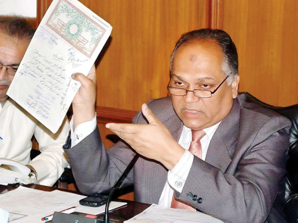 ایڈمنسٹریٹروسیکریٹری کی عدم دلچسپی سے مسائل حل نہیں ہورہے،تاجروں کی شکایت کمشنر کراچی شعیب احمد صدیقی تاجروں کاحلف نامہ دکھارہے ہیں ۔ فوٹو : ایکسپریس