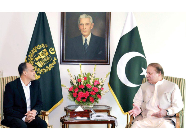 اسلام آباد:وزیراعظم نوازشریف سے ملائیشیا کی ’’ایم سی کارپوریشن‘‘ کے چیئرمین سید مختار البخاری ملاقات کررہے ہیں ۔ فوٹو : آن لائن