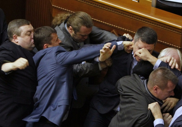 یوکرین ان دنوں شدید داخلی بحران کا شکار ہے لیکن اس حالت میں وہاں کے منتخب نمائندوں نے معاملات پر غور کے بجائے پارلیمنٹ کو ہی کشتی کا اکھاڑا بنادیا۔