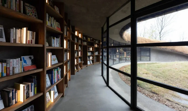 کھیت اور سبزے کے نیچے قائم جاپانی لائبریری
