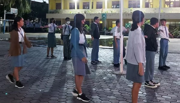 نیوسا ٹینجرا صوبے کے صدرمقام شہر کیوپانگ میں یہ منظر عام ہیں جہاں ایک آزمائشی منصوبے کے تحت بچوں کو صبح ساڑھے پانچ بجے اسکول بلایا جارہا ہے۔ یہ بچے اس متنازعہ تجربے میں شریک ہیں جس کا مقصد تعلیمی دن کو دو یا تین گھنٹے پہلے شروع کرنا ہے۔