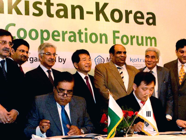 جنوبی کوریا کے مرکزی چیمبر سے تجارت اور سرمایہ کاری بڑھانے کے لیے ایم او یو پر دستخط کے موقع پرانھوں نے کہا کہ کوریا نے سالہا سال سے ساری توجہ ترقی پر مزکور رکھی اور اقتصادیات سے سیاسی مداخلت کا خاتمہ کرتے ہوئے ایس ایم ای سیکٹر کو پروان چڑھایا جس سے ہمیں بھی سبق سیکھنے کی ضرورت ہے، دونوں ممالک کے مابین دوستانہ مراسم کے باوجود باہمی تجارت 1.6ارب ڈالر سالانہ ہے جبکہ کوریا اور بھارت کی تجارت 16 ارب ڈالر سے زیادہ اور چین سے اسکی تجارت 1ارب ڈالر روزانہ کے لگ بھگ ہے، پاکستان کی معاشی صورتحال بہتر ہو رہی ہے جو کوریا اور دیگر ممالک کے سرمایہ کاروں کے لیے سنہری موقع ہے، پاکستان کا توانائی کا شعبہ 17 فیصد منافع دے رہا ہے جو بے مثال ہے۔