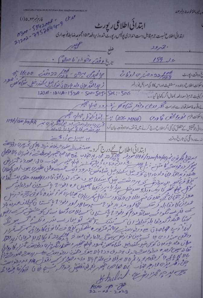 مقدمہ ضلع خیبر میں جمرود کے علاقے شاکس کے رہائشی نے 22 جون کو درج کرایا۔