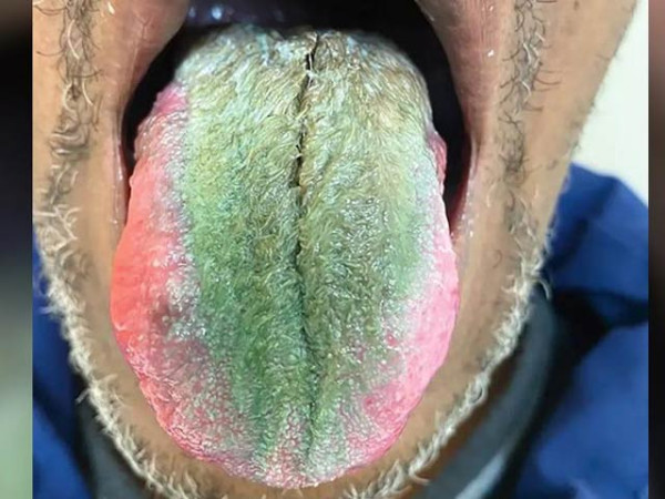 یہ نہیں معلوم کہ متاثرہ شخص کتنے عرصے سے سگریٹ پی رہا ہے اور آیا یہ ری ایکشن تمباکو نوشی سے ہوا ہے یا اینٹی بایوٹکس کا اثر ہے۔ یہ بھی نہیں بتایا گیا کہ یہ کیا سگریٹ اور دوا سے زبان ہری ہوگئی ہے؟ لیکن یہ ایک عجیب واقعہ ہے جس میں زبان پر بال نما ابھار بھی نمودار ہوئے ہیں۔ شاید یہ غذائی باقیات اور بیکٹیریا کی وجہ سے پیدا ہوئے ہیں۔