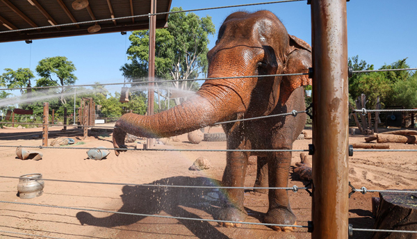 فینکس میں 43 درجے سینٹی گریڈ میں جانوروں کے لیے پنجروں میں فوارے، برف اور پانی کا انتظام رکھا گیا ہے