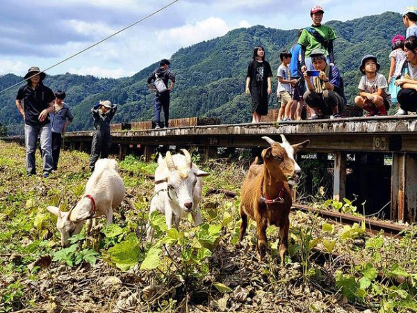 بکریوں نے متروک ریلوے ٹریک پر اگی گھاس کو بھی کھا کر ختم کیا اور ریلوے پٹڑیاں صاف ہوچکی ہیں۔ یہ پیٹریاں شامانے پریفیکچر کے علاقے میساٹو نامی علاقے میں واقع ہے۔ یہ ایک پرفضا مقام ہے جہاں جنگلی گھاس نے ایک جانب تو کھیتی باڑی کو ناممکن بنادیا تھا تو دوسری جانب لمبی گھاس میں خنزیروں نے اپنا مسکن بنالیا تھا۔ ان جانوروں سے دیہاتی بہت پریشان تھے۔