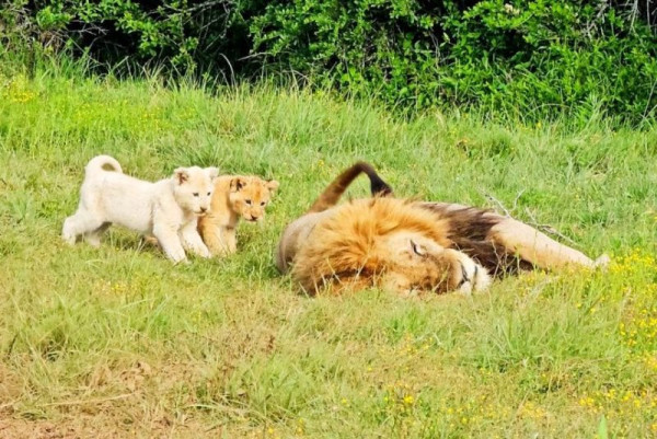 جنوبی افریقا کے جنگل میں ایک شخص نے شیر کے دو چھوٹے بچوں کے مشغلے کا ایک منظر کیمرے میں قید کیا جب انہوں نے اپنے سو رہے باپ کو تنگ کر کر کے اس کی نیند خراب کر دی۔