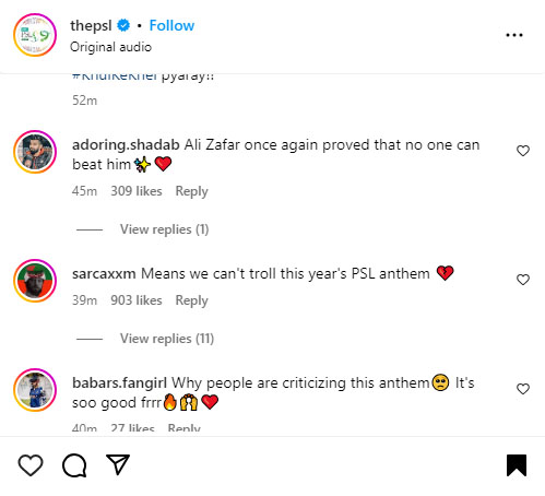 ایک صارف نے تبصرہ کرتے ہوئے لکھا: 'لگتا ہے اس سال ہم پی ایس ایل ترانے پر ٹرولنگ کرنے سے محروم رہیں گے'۔