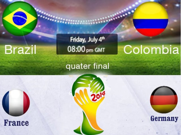 فیفا ورلڈ کپکوارٹرفائنل مرحلے میں آج برازیل کولمبیا اور فرانس و جرمنی کی ٹیمیں مدمقابل ہونگی