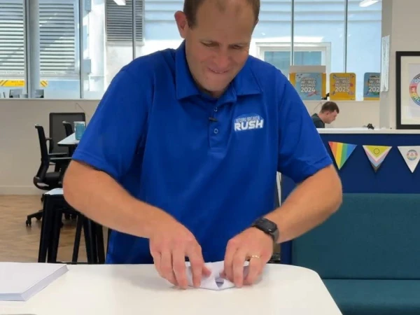 ایک سیریل گنیز ورلڈ ریکارڈ توڑنے والے ڈیوڈ رش نے صرف 5.12 سیکنڈ میں کاغذ کے جہاز کو تہہ کرکے اور پھینک کر نیا ریکارڈ قائم کرلیا ہے۔