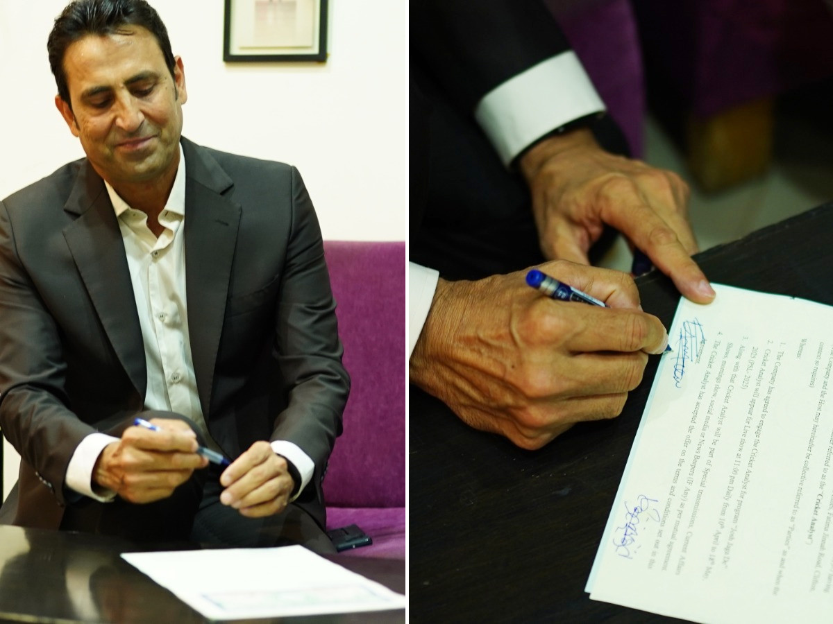 یونس خان نے ایکسپریس نیوز کے دفتر آکر معاہدے پر دستخط کیے، جہاں ادارے کے اعلیٰ عہدیداروں نے انکا استقبال کیا۔