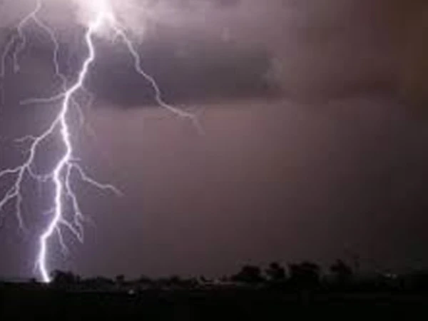 طوفان کے ساتھ آسمانی بجلی کی گرج سے علاقے میں لال رنگ کی روشنی پھیل گئی جس سے شہریوں میں خوف کی لہر دوڑ گئی۔