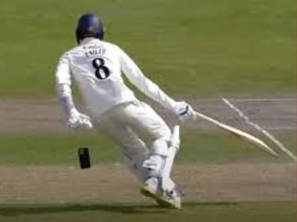 انگلش کاؤنٹی چیمپئن شپ میں رن بنانے کیلیے وکٹوں کے درمیان دوڑتے ہوئے لنکاشائر کے کرکٹر کا موبائل فون گرگیا۔