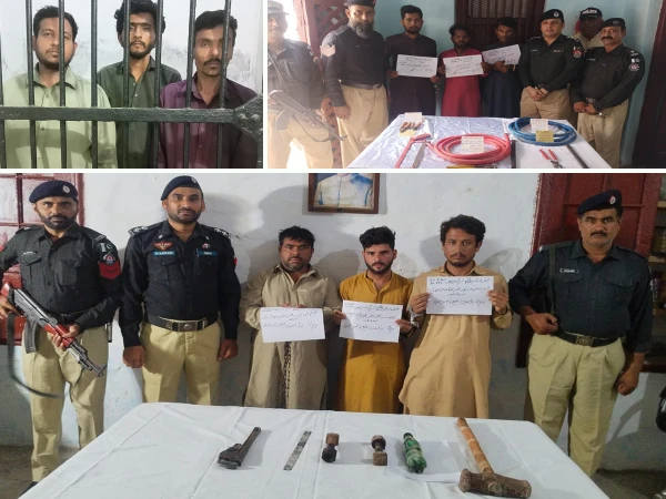ملزمان کے قبضے سے چوری شدہ تار، کٹر اور آری وغیرہ برآمد کرلیے گئے ہیں،ملزمان کے خلاف مقدمات درج کرلیے گئے ہیں، پولیس