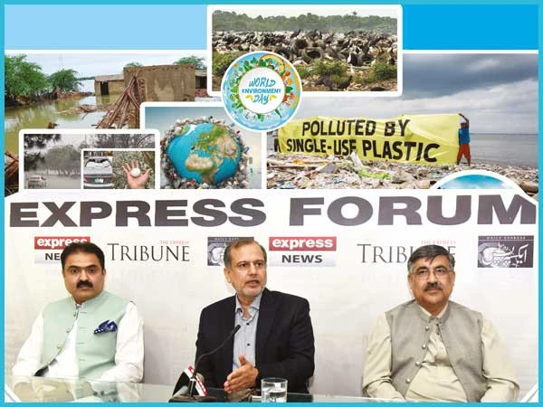 رپورٹ: احسن کامرے5 جون کو دنیا بھر میں ماحولیاتی تحفظ کا عالمی دن منایا جاتا ہے جس کا مقصد عالمی سطح پر ماحول کو محفوظ بنانے پر زور دینا ہے۔ پاکستان کا شمار دنیا کے ان دس ممالک میں ہوتا ہے جو موسمیاتی تبدیلی اور ماحولیاتی مسائل سے سب سے زیادہ متاثر ہو رہے ہیں۔ اس اہم دن کے موقع پر ’’ایکسپریس فورم‘‘ میں خصوصی مذاکرہ کا اہتمام کیا گیا جس میں حکومت اور سول سوسائٹی کے نمائندوں نے اپنے خیالات کا اظہار کیا۔ فورم میں ہونے والی گفتگو نذر قارئین ہے۔