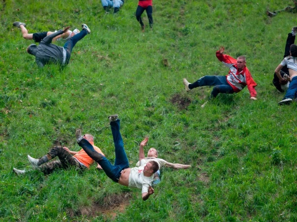 اس کھیل میں ایک پنیر سے بنا ایک بڑے پہیے کو ایک ڈھلوان پر لڑھکایا جاتا ہے، اور درجنوں لوگ اس کے پیچھے دوڑتے ہیں۔ پہلا شخص جو نیچے پنیر تک پہنچتا ہے، وہ نہ صرف جیتتا ہے بلکہ وہ پوری پنیر بھی اس کی ہوجاتی ہے۔