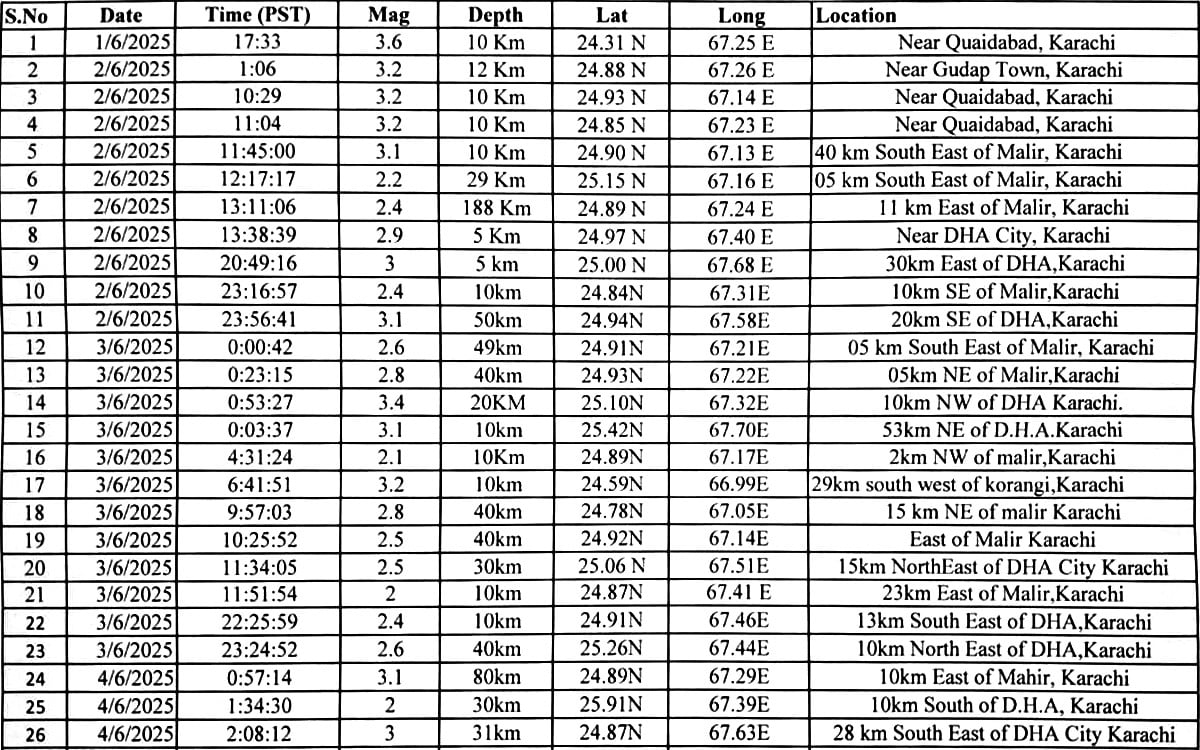 مزید پڑھیں: کراچی مسلسل تیسرے روز بھی زلزلوں کی زد میں، تعداد 19 ہوگئی، شہریوں میں خوف و ہراس