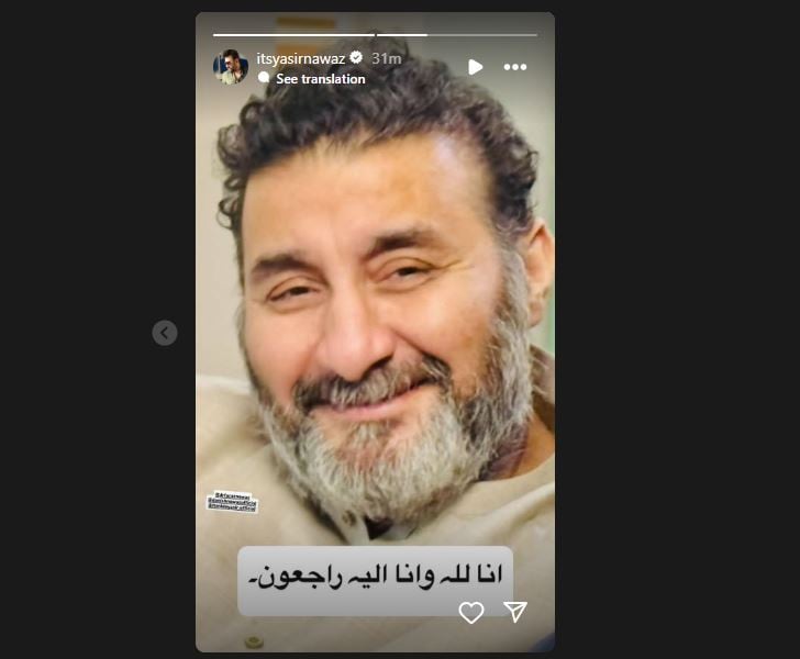 یاسر نواز نے انسٹاگرام اسٹوری کے ذریعے یہ خبر دی ہے کہ ان کے بھائی وقار نواز انتقال کر گئے ہیں جن کی نماز جنازہ بعد نمازِ ظہر ادا ہوگی۔