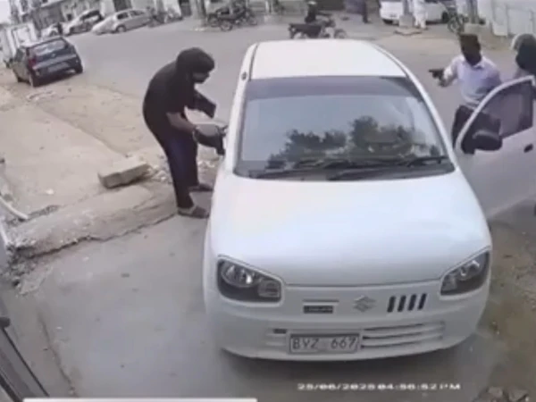 شاہد حسین نامی شہری درخشان تھانے کے علاقے بدر کمرشل بینک سے رقم لیکر گھر پر گاڑی سے اترا ہی تھا کہ تعاقب کرتے ڈاکو بھی پہنچ گئے، ایک ڈاکو بیگ سے اسلحہ نکالتا ہے اور گاڑی میں رکھا رقم سے بھرا تھیلا چھینتا ہے۔ ڈاکو تھیلا کھول کر پیسوں کی تسلی کرتے ہیں۔