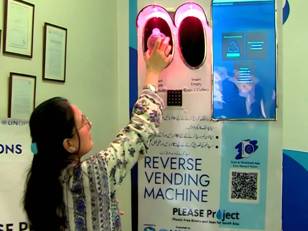 پلاسٹک کی استعمال شدہ خالی بوتلیں کچرے میں پھینکنے کے بجائے انہیں مشین میں ڈال کر کریڈٹ حاصل کیا جا سکے گا، ڈیڑھ لیٹر کی 20 خالی بوتلیں ریورس وینڈر مشین میں ڈالنے پر ایک ہزار روپے کا گرین کریڈٹ ملے گا۔