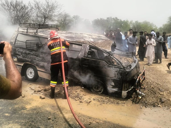 طالبات سے بھری وین میں آگ لگ گئی، ایک طالبہ جاں بحق، 8 زخمی