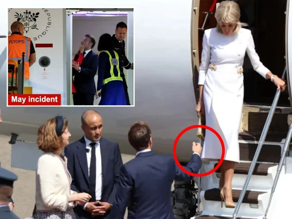 صدر میکرون نے طیارے کی سیڑھیوں پر اہلیہ کی طرف ہاتھ بڑھایا، لیکن خاتون اول نے بلا جھجک نظرانداز کر دیا اور یہ لمحہ کیمروں نے محفوظ کر لیا۔