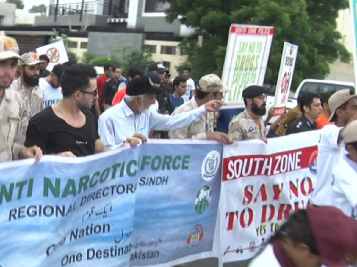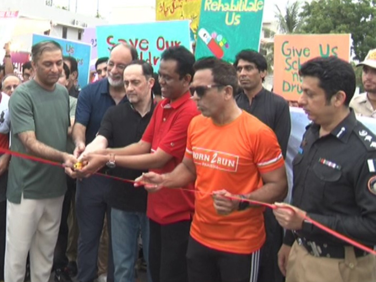 ایکسپریس نیوز کے مطابق ساؤتھ زون پولیس کی جانب سے منشیات کے خلاف آگہی مہم کے سلسلے میں مرینہ کلب کے قریب واک کا اہتمام کیا گیا۔
