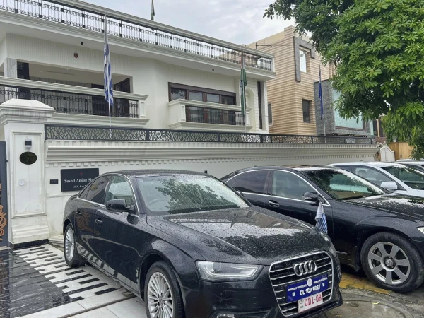پولیس نے عمارت سے جعلی سفارتی پلیٹس کی حامل چار گاڑیاں اور تقریباً 45 لاکھ بھارتی روپے اور مختلف کرنسیوں میں کیش برآمد کیا ہے۔