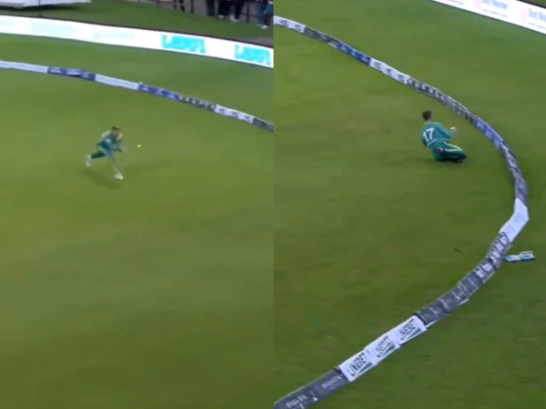 ڈی ویلیئرز نے یوسف پٹھان کا کیچ تو پکڑ لیا لیکن ان کا جسم باؤنڈری سے ٹکرانے لگا تھا جس پر انہوں نے گیند اپنے ساتھی فیلڈر کی طرف اچھال دی۔