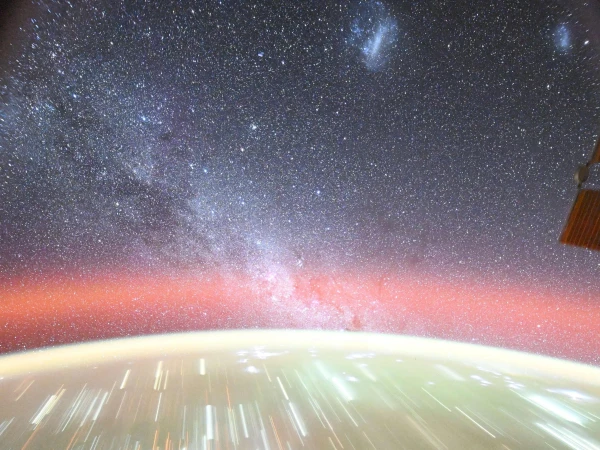 ملکی وے کے اوپر دو دُور دراز کہکشائیں نظر آرہی ہیں جو زمین کے جنوبی نصف کرہ سے نظر آتی ہیں مگر عام آنکھ سے دکھائی نہیں دیتیں۔ یہ تصویر بین الاقوامی خلائی اسٹیشن سے سامنے آئی ہے۔