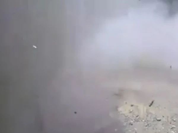 کیمرہ بھی گرد آلود ہوگیا، قریب موجود افراد میں بھگدڑ مچ گئی، گرد کم ہونے پر اہل علاقہ کو جمع ہوتے ہوئے دیکھا جاسکتا ہے۔