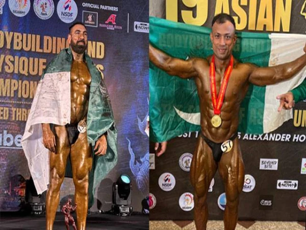 تھائی لینڈ میں ہونے والی 57ویں ایشین باڈی بلڈنگ چیمپئن شپ میں شاندار کارکردگی دکھانے والے قومی تن ساز ہیروز وطن واپس پہنچ گئے، کراچی ایئرپورٹ پاکستان زندہ باد کے نعروں سے گونج اٹھا۔