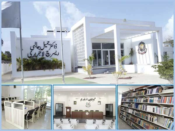اردو زبان و ادب کے عظیم معمار اور محقق و مؤرخ، سابق شیخ الجامعہ، ڈاکٹر جمیل جالبی کے نام سے موسوم علمی و ادبی کتب کے قیمتی اثاثے پر مشتمل پُرشکوہ عمارت جامعہ کراچی کے قلب میں واقع ہے۔