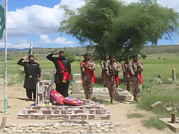 بلوچستان سے تعلق رکھنے والے شہداء کی عظیم قربانی کو خراج تحسین پیش کرنے کی غرض سے پاک فوج اور ایف سی بلوچستان کے افسران اور جوانوں نے شہداء کے ورثاء کے ہمراہ شہداء کی قبور پر پھولوں کی چادر چڑھائی اور فاتحہ خوانی کی۔