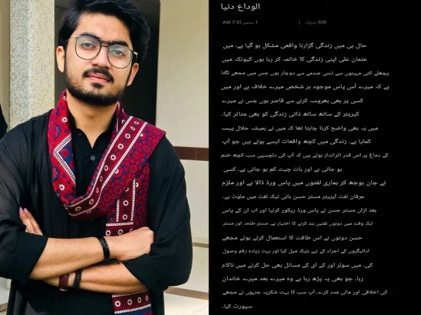 عثمان نے خودکشی سے پہلے سوشل میڈیا پر پیغام شیئر کیا جس میں اُس نے اسکول انتظامیہ پر اپنی خودکشی کا الزام عائد کیا تھا۔