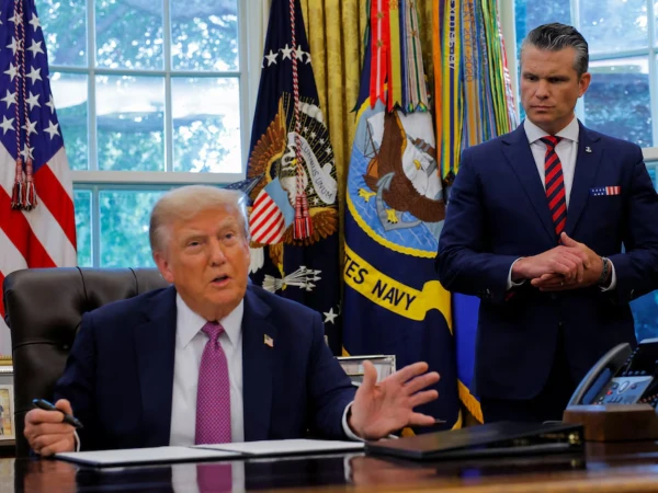 اس موقع پر پینٹاگون کے سربراہ پیٹ ہیگستھ بھی صدر کے ہمراہ موجود تھے۔ نام کی تبدیلی کے بعد وہ اب باضابطہ طور پر سیکرٹری آف وار (وزیرِ جنگ) کہلائیں گے۔