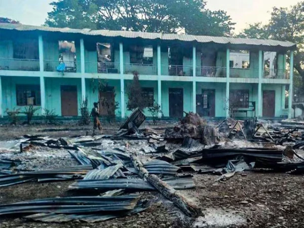 شورش زدہ میانمار کی فوجی حکومت نے مبینہ طور پر باغیوں کی سرکوبی کے لیے ریاست راکھائن کے اسکول پر بمباری کردی۔
