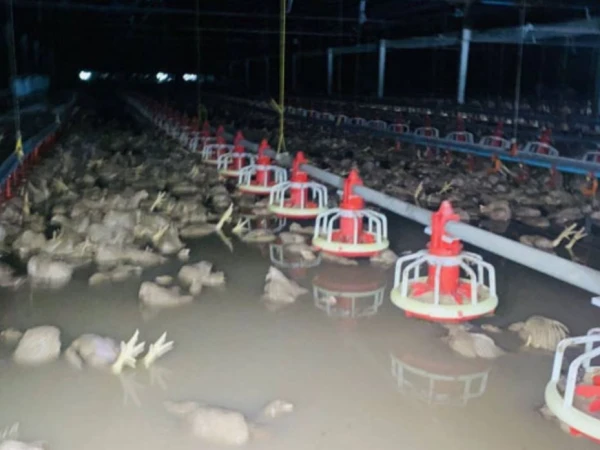 تھائی لینڈ کے مشرقی صوبے کے ضلع موانگ میں شدید بارشوں کے بعد آنے والے سیلاب نے تباہی مچادی، جس کے نتیجے میں ایک پولٹری فارم میں 50 ہزار مرغیاں ہلاک ہوگئیں۔