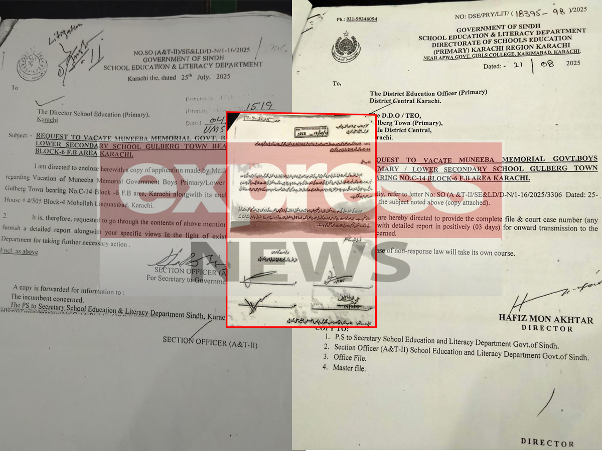 ذرائع کے مطابق سرکاری اسکول کی عمارت کو خستہ حال قرار دے کر اہل علاقہ کے نام سے ایس پی گلبرگ کو درخواست دے دی گئی ہے۔جس پر 25 جولائی کو محکمہ تعلیم سندھ نے ڈائریکٹر اسکول ایجوکیشن پرائمری سے جاوید میاں کی اسکول خالی کرنے کی درخواست پر کمنٹس مانگے ہیں۔