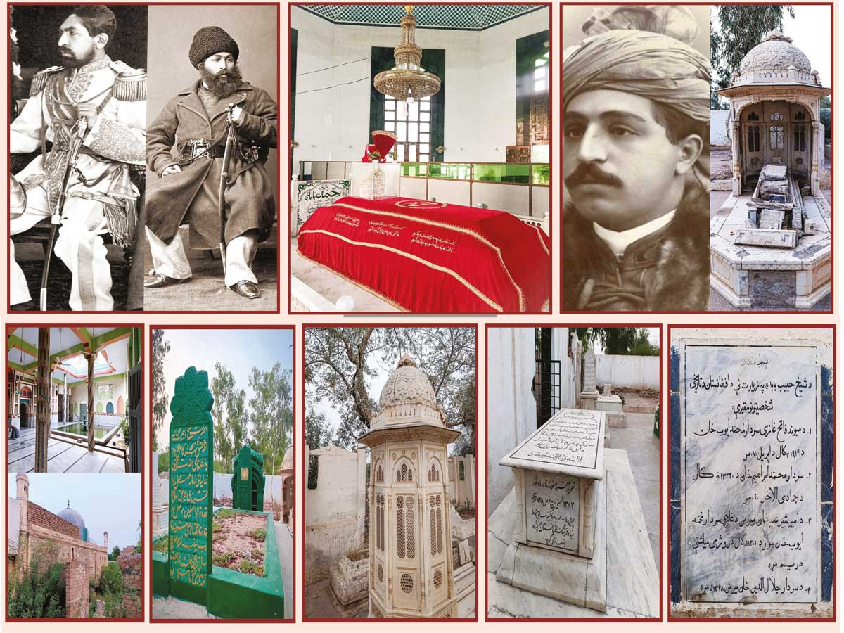 سبز رنگ کے دروازے کے بائیں جانب جو تختی لگی ہے اس کے مطابق یہاں بزرگ شیخ حبیبب باباؒ، فاتح میوند غازی سردار محمد ایوب خان، سردار محمد ابراہیم خان، امیر شیر علی خان اور سردار جلال الدین خان مدفون ہیں۔
