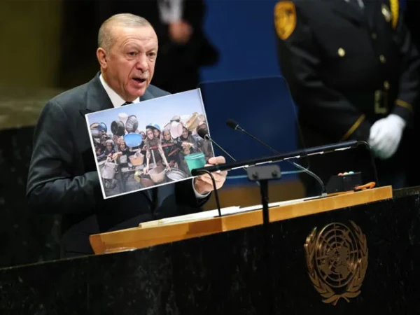 ترک صدر نے دنیا بھر کے ممالک سے فلسطین کو تسلیم کرنے کا مطالبہ کرتے ہوئے کہا کہ میں اپنے 86 ملین شہریوں کی نمائندگی کے ساتھ ساتھ اپنے فلسطینی بھائیوں اور بہنوں کے لیے بھی یہاں کھڑا ہوں جن کی آوازیں دبائی جا رہی ہیں۔