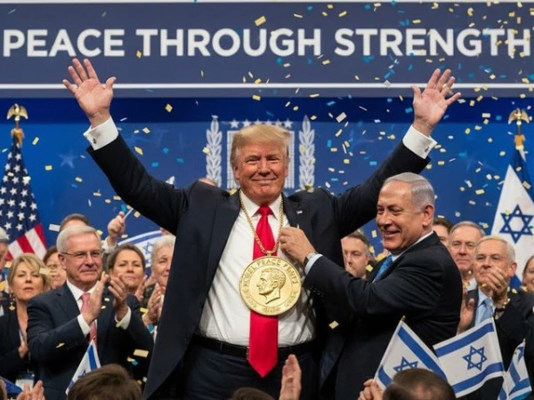 اسرائیلی وزیر اعظم بنیامین نتن یاہو نے سابق امریکی صدر ڈونلڈ ٹرمپ کو نوبیل امن انعام دینے کا مطالبہ کرتے ہوئے AI سے تیار کردہ ایک تصویر بھی سوشل میڈیا پر شیئر کی۔