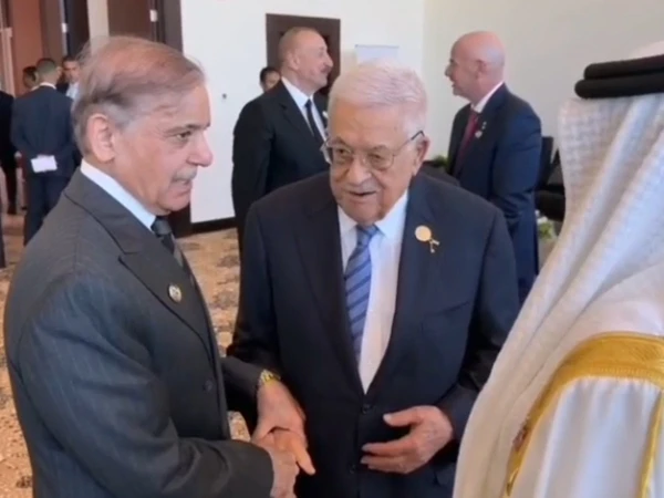 وزیرِاعظم محمد شہباز شریف نے شرم الشیخ میں منعقدہ امن سربراہہ اجلاس کے موقع پر فلسطین کے صدر محمود عباس کے ساتھ خوشگوار ملاقات کی جس میں بحرین کے فرمانروا شاہ حمد بن عیسی الخلیفہ بھی شریک تھے۔