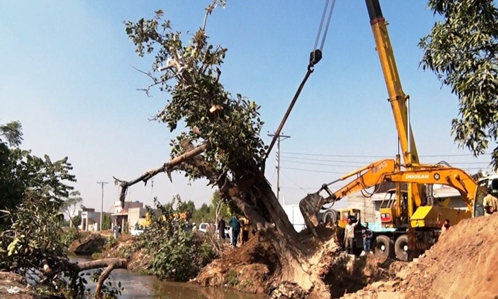 کاہنہ کے قریب حویلی چیتو والی کے علاقے میں پچاس سالہ پرانا برگد کا درخت تیز ہواؤں کے باعث راجباہ کے اندر گر گیا تھا، محکمہ جنگلات نے کامیاب کارروائی کے بعد دوبارہ اسی جگہ لگا دیا۔