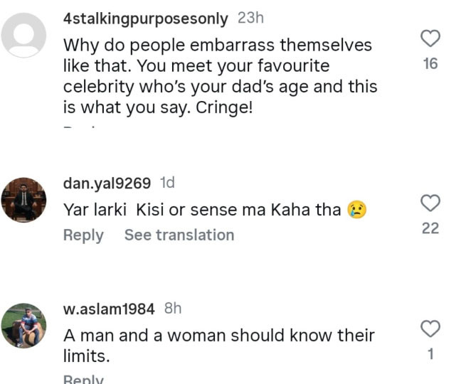 ایک صارف نے لکھا ’لوگ خود کو کیوں شرمندہ کرتے ہیں؟ اپنے باپ کی عمر کے بندے کی ایسی تعریف؟ عجیب‘۔