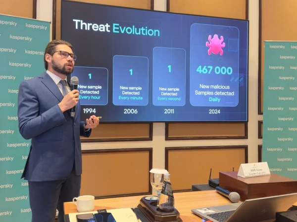 میڈیا بریفنگ کے دوران کیسپرسکی کے عالمی سیکیورٹی ماہر دمتری بریزِن نے پاکستان کو درپیش سنگین سائبر خطرات پر روشنی ڈالی جن میں ایکسپلائٹس، تاوان کی غرض سے سائبر حملے، اور ٹارگٹڈ حملے شامل ہیں۔ کیسپرسکی کے اعداد و شمار کے مطابق 2025 کے پہلے نو ماہ میں پاکستان میں 53 لاکھ سے زائد آن ڈیوائس حملے ریکارڈ کیے گئے، ان میں 27 فیصد عام صارفین اور 24 فیصد کارپوریٹ ادارے متاثر ہوئے جنہیں انفیکٹڈ یو ایس بی ڈرائیوز، سی ڈیز، ڈی وی ڈیز اور خفیہ انسٹالرز کے ذریعے مال ویئر پہنچایا گیا جیسے رینسم ویئر، ورمز، بیک ڈورز، ٹروجنز، پاس ورڈ چور سافٹ ویئر اور اسپائی ویئر۔