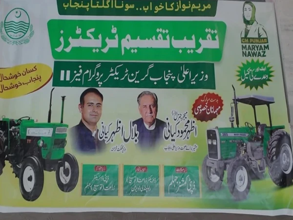 وزیراعلی پنجاب مریم نواز شریف کی گرین ٹریکٹر اسکیم کے تحت جہلم میں کسانوں میں جدید ٹریکٹر تقسیم کر دیے گئے۔