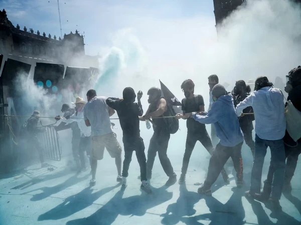 رپورٹ میں بتایا گیا کہ دارالحکومت میکسیکو سٹی میں نوجوان کے مشتعل گروپ نے صدر کلاؤڈیا شینباؤم کی رہائش گاہ نیشنل پیلس کے گرد بنائی گئی حفاظتی دیوار گرادی، جس کے نتیجے میں پولیس کے ساتھ جھڑپیں ہوئی اور پولیس نے مظاہرین کو منتشر کرنے کے لیے آنسو گیس کے فائر کیے۔