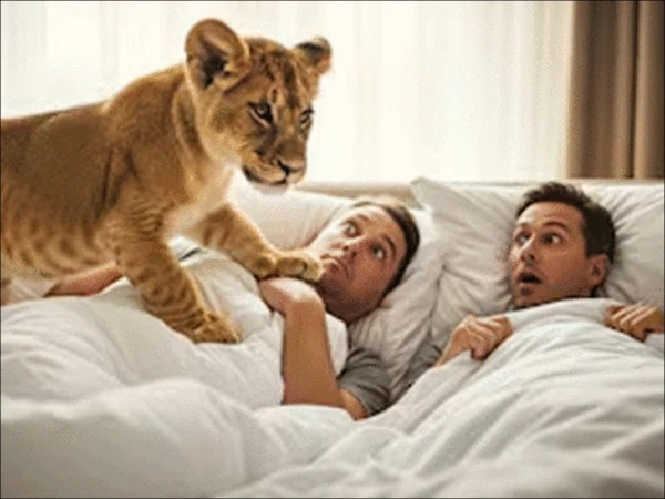 تصور کیجئے، آدھی نیند میں آپ کو چھوٹے شیر کے بچے نظر آئیں، خوف بھی اور مزہ بھی!