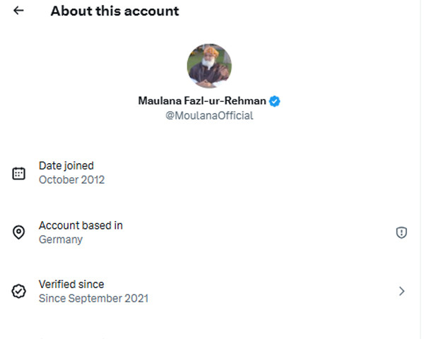 اس کے علاوہ جے یو آئی رہنما مولانا فضل الرحمن کا اکاؤنٹ جرمنی سے آپریٹ ہو رہا ہے۔